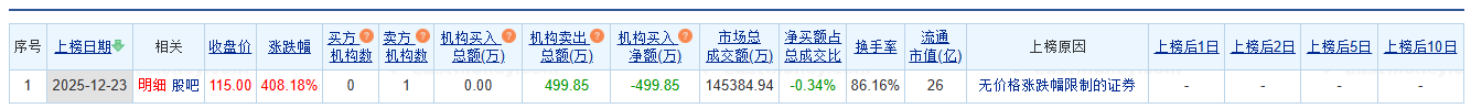 纳百川龙虎榜:1家机构跻身买家卖家前5名,总净