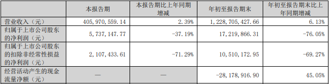 中国经济网北京11月5日电 红星股份(001209.SZ)近日发布2025年三季度报告。今年前三季度,公司实现营业收入12.29亿元,同比增长6.13%;归属于上市公司股东的净利润1721.99万元,同比下降76.05%;归属于上市公司股东的扣除非经常性损益的净利润1051.02万元,同比下降69.27%;经营活动产生的现金流量净额-2817.89万元。 2024年,公司实现营业收入17.75亿元,同比增长11.18%;归属于上市公司股东的净利润8027.43万元,同比减少7.88%;归属于上市公司股东的扣除非经常性损益的净利润4039.52万元,同比下降34.81%;经营活动产生的现金流量净额1.29亿元,同比增长182.17%。红星股份于2021年7月23日在深圳证券交易所主板挂牌上市,公开发行新股2348.65万股,发行价格29.88元/股。保荐机构为申万宏源证券承销保荐有限公司,保荐代表人为张晓、黄子君。上市第三个交易日,即2021年7月27日,红星股份开盘价为47.33元,创上市以来最高点。此后,该股震荡下跌。该股目前处于突破状态。红星首次公开发行股票募集资金总额7.02亿元,扣除发行费用后的募集资金净额(e含增值税)6.41亿元,其中拟用于年产900万套工业工业项目3.07亿元,信息管理系统及物流日志8200万元,网络扩容推广项目8200万元,增加流动资金1亿元。红星股份首次公开发行发行费用为6087.59万元(不含税),其中申万宏源证券接受国信承销保荐有限公司。2022年6月17日,红星股份发布了关于实施2021年度权益分配的公告。经2021年度股东大会审议通过的权益分配方案为:公司拟使用以93,944,800股为基数,以资本公积金向全体股东每10股转4股,共计37,577,920股。本次增资后,公司总股本增至131,522,720股。本年度不送红股,不派发现金红利,剩余未分配利润结转以后年度分配。本次权益分派的股权登记日为2022年6月22日,除权及分红日为2022年6月23日。